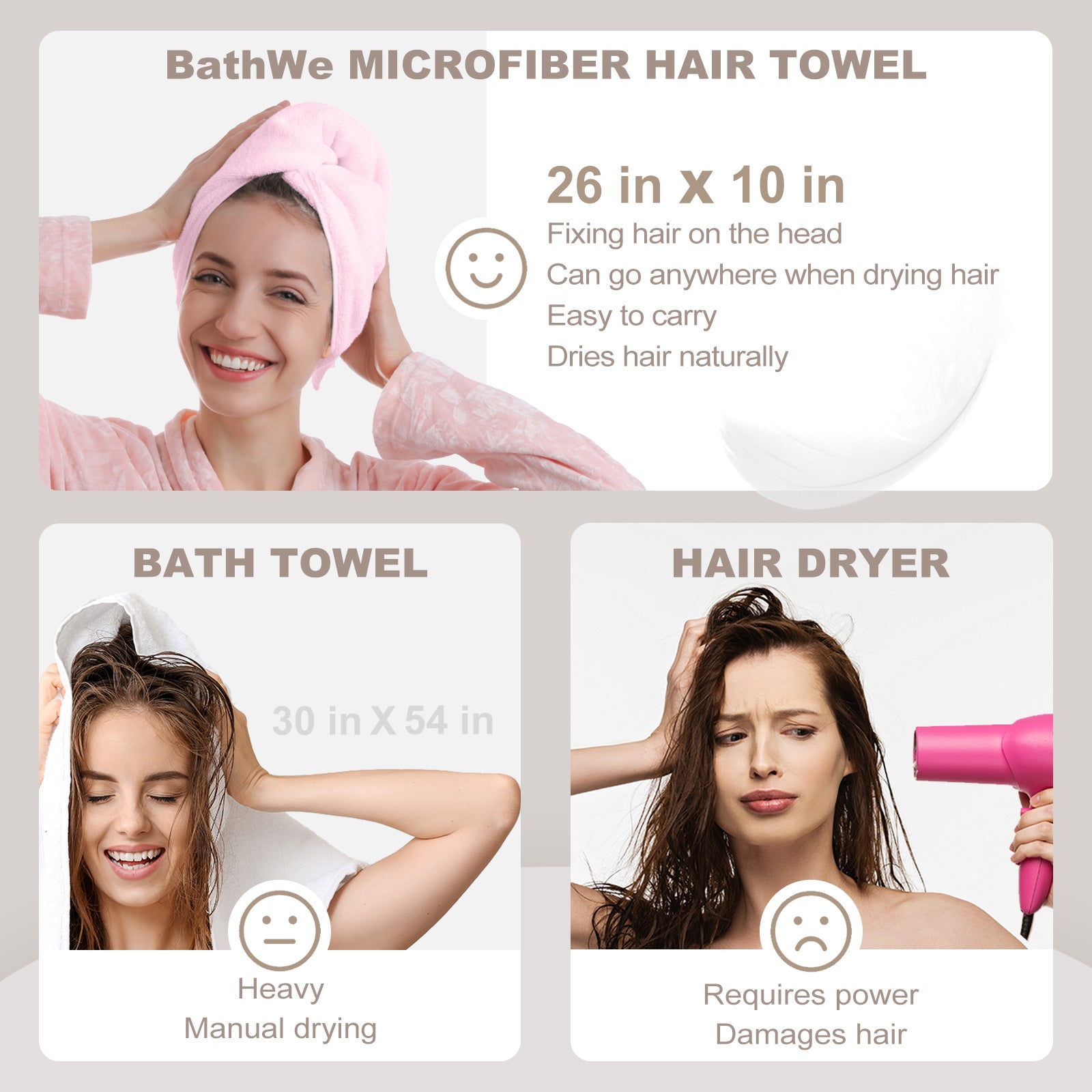 - Works for All Types of Hair: The 10" 26" Ultra Plush Microfiber Hair Towel is among the highest quality hair drying towels on the market. Being generous in size, this microfiber hair towel turban will never let you down. Ideal for women, men, and kids. Great for all types of hair. From long, short, curly, flat, voluminous, or dyed to super straight, fine strands, coarse and kinky locks. No matter your look, we've got you covered