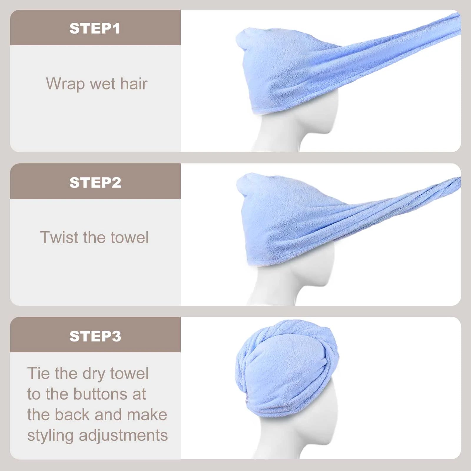 - EASY TO USE : The unique twist and loop system makes the hair towel wrap that stays in place. It means that you can get dressed, apply makeup, and check email, all while drying hair without discomfort or head towel wrap falling off